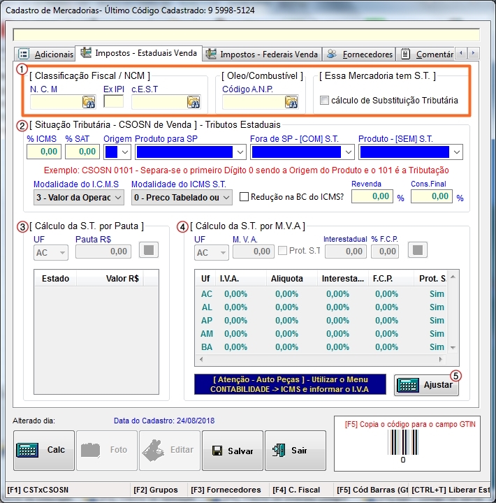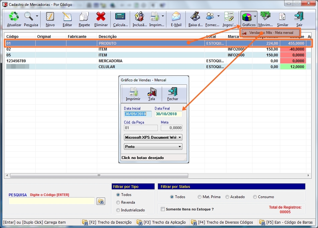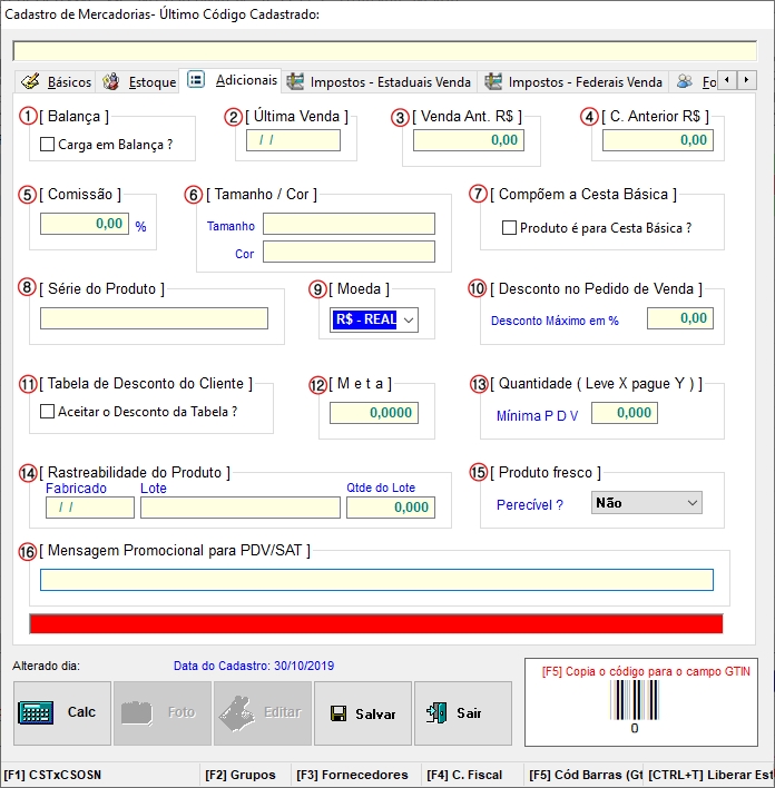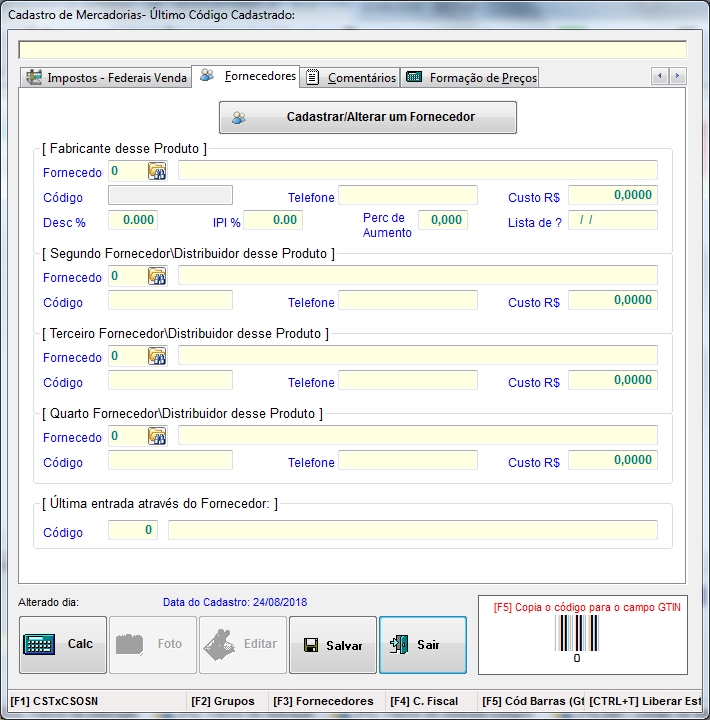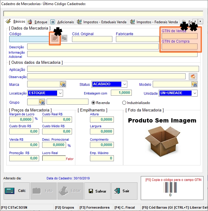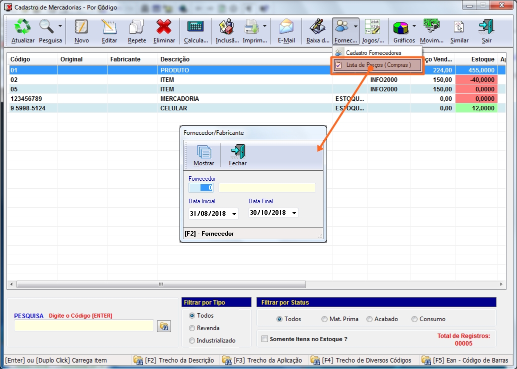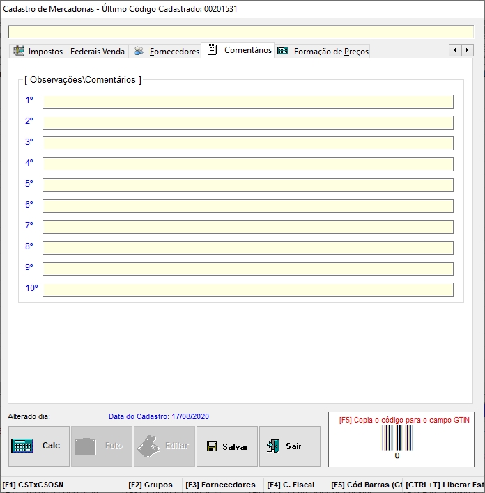 seja o código de barras, pressione [F5] para preencher o campo