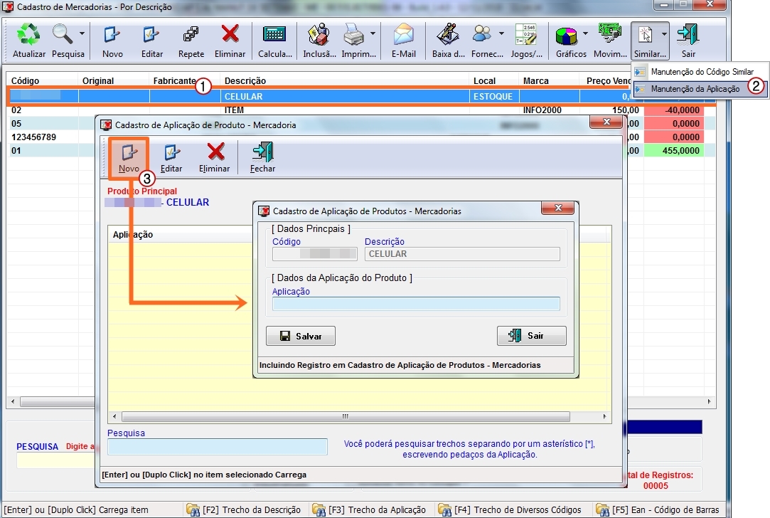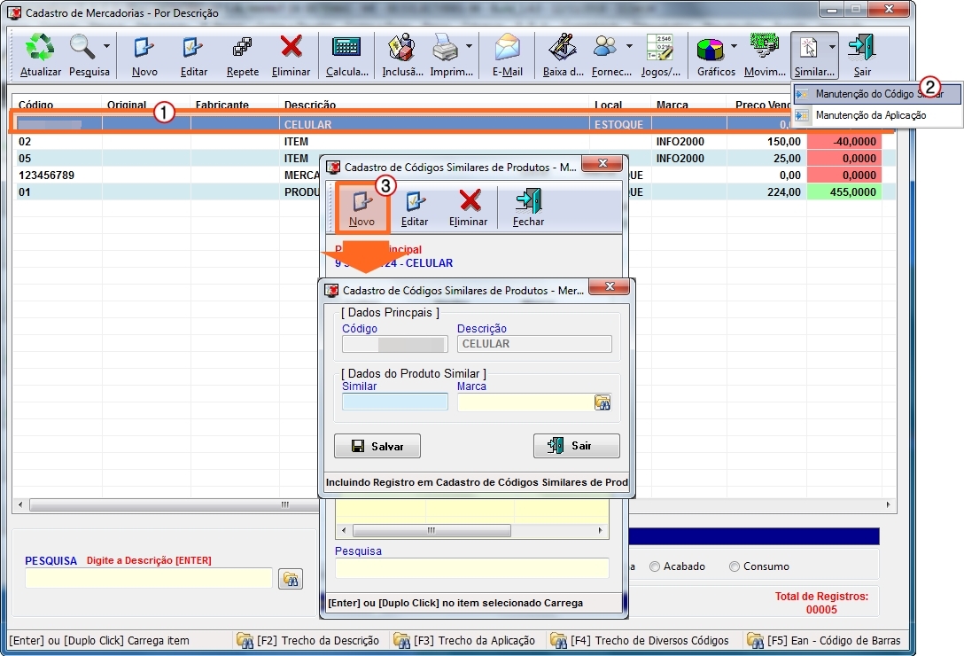 SIMILAR] e depois clique no botão [3. NOVO] e digite o código e