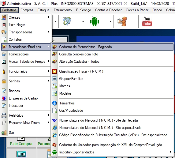 MERCADORIA/PRODUTOS -> CADASTRO DE