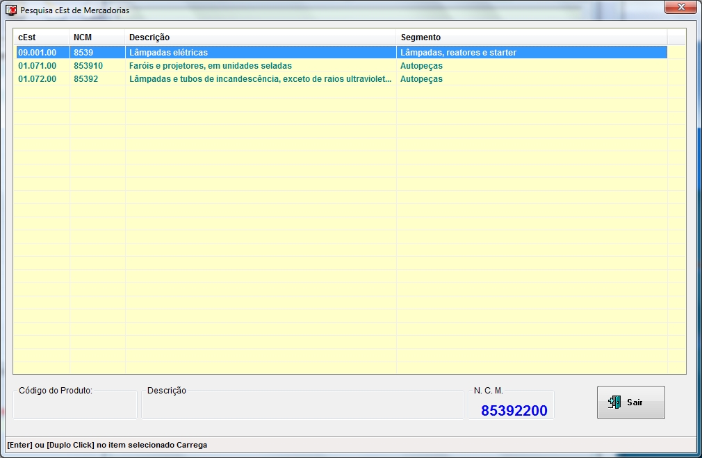 de NCM cadastrados. Dê duplo clique no NCM que irá atrelar a