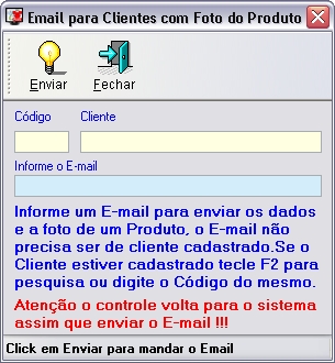 janela, onde você colocará o nome do cliente e o e-mail (O