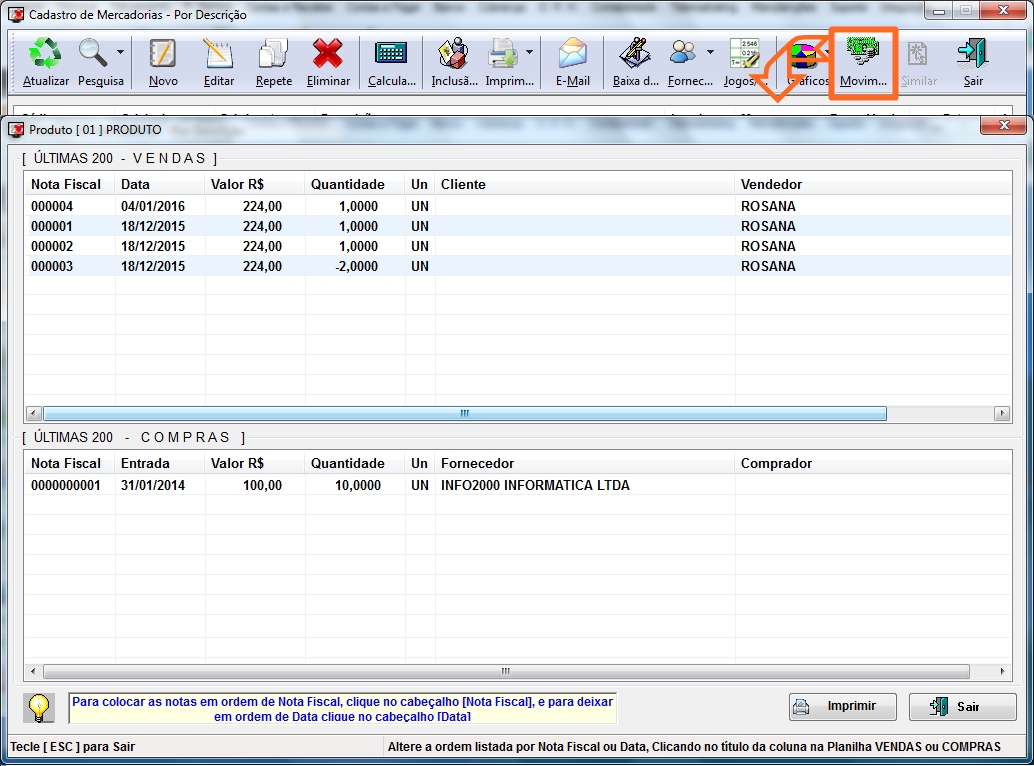 15. Movimento: Selecione o produto e clique no
