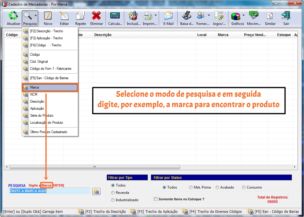 pesquisa; você deverá digitar uma determinada MARCA. Caso