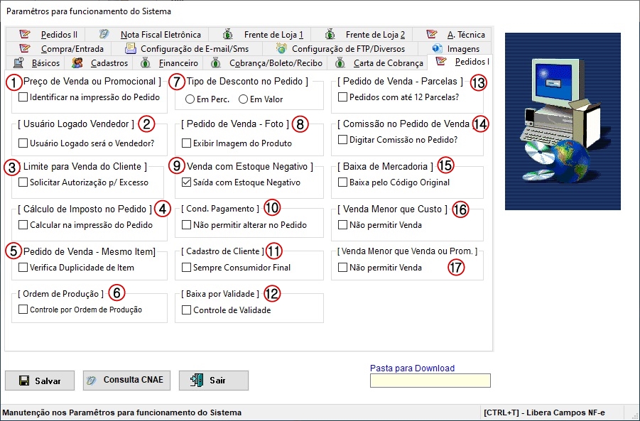 parametrização do sistema no campo [CRÉDITO DE ICMS -