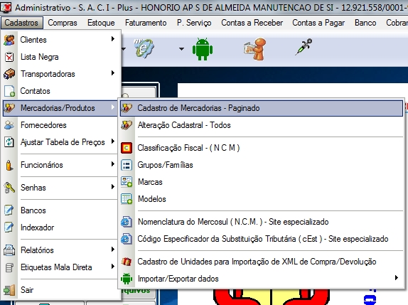 determinado seguimento de mercadoria. Para efetuar um cadastro,