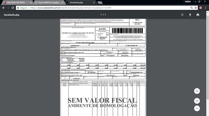 Você poderá salvar o danfe ou imprimir, utilizando os botoões