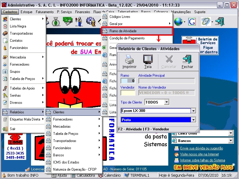 imprimir um relatório por ramo de Atividade. Facilitando na hora