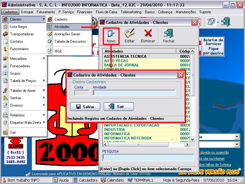 CLIENTES -> CADASTRO DE ATIVIDADES: