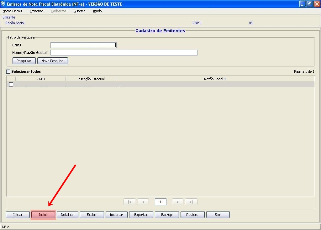Mostra o Cadastro do Emitente, no caso, cadastre SUA EMPRESA com