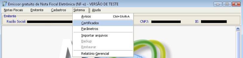 certificado digital no aplicativo da Sefaz, Selecione o MENU
