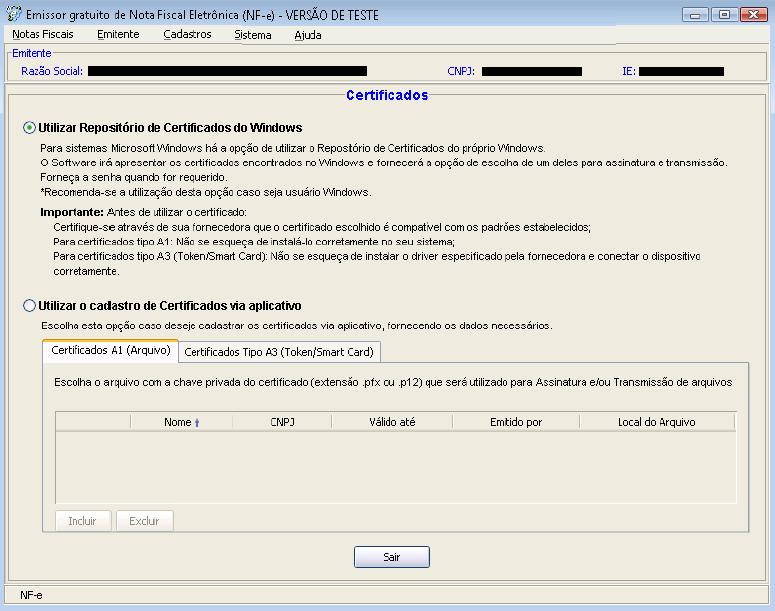 certificado for do Tipo A1, selecione a opção "Utilizar