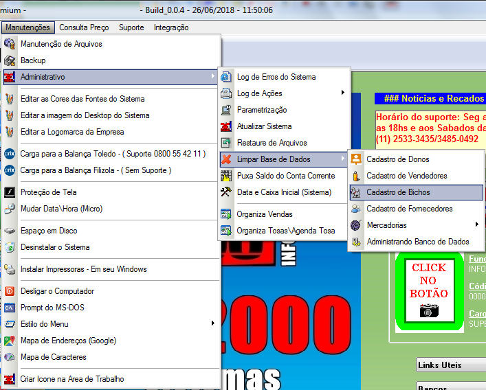 ADMINISTRATIVO -> LIMPAR BASE DE DADOS ->