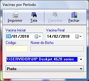 vacinas cadastradas para um determinado bicho [Tecle [F2]