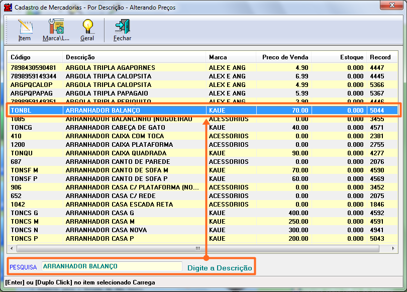 Clicando em [OK], você outra tela onde você informará a marca\Dept
