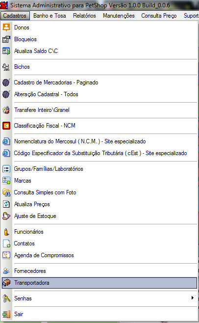 6-NOVO: Clique no botão NOVO [ ALT ] + [ N ], o sistema liberará a janela para o modo de edição e o cursor piscará no campo código da transportadora, caso você tenha suas transportadoras cadastradas em fichas e possua numeração informe agora, caso não tenha numeração ou queira iniciar uma nova deixe em branco que o sistema irá informar o número da trasportadora no final do Cadastro. Pressione [ ENTER ] com ou sem o número da transportadora e preencha as demais informações.