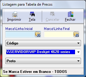 Tabela de Preços: Informe que a marca\linha inicial e