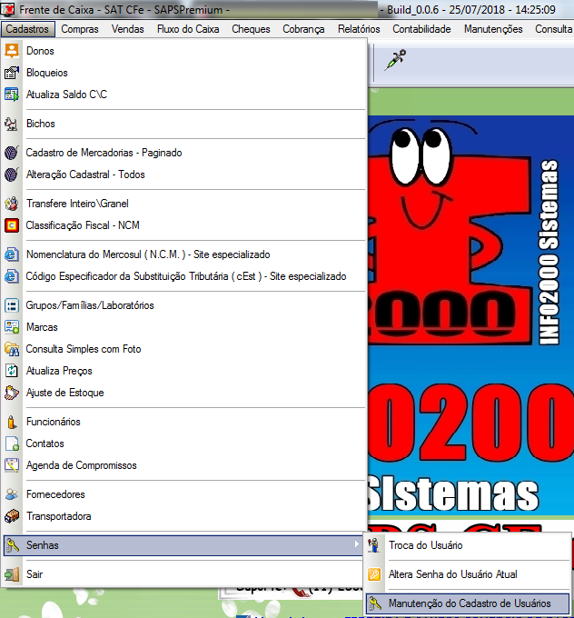 SENHAS -> MANUTENÇÃO DO CADASTRO DE