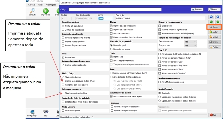 configurar os parâmetros da balança;