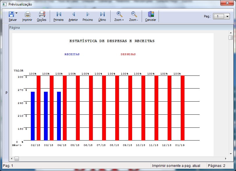 gráfico de Receitas e Despesas de um determinado mês e ano.
